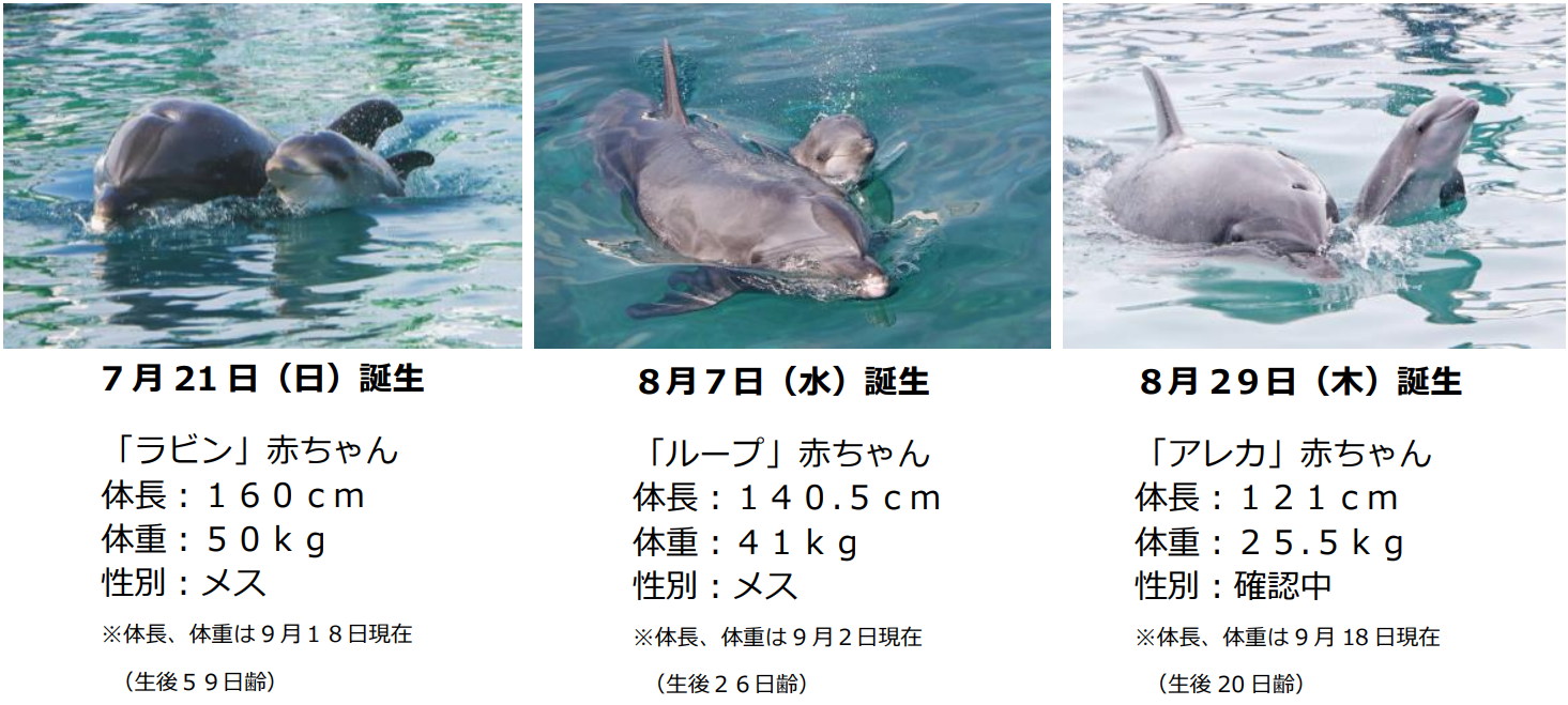 『横浜・八景島シーパラダイス』の水族館「ふれあいラグーン」では、7月21日に1頭目、8月7日に2頭目、そして8月29日に3頭目のバンドウイルカの赤ちゃんが誕生いたしました。