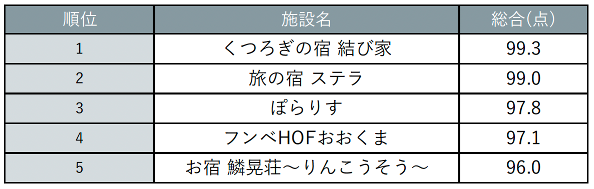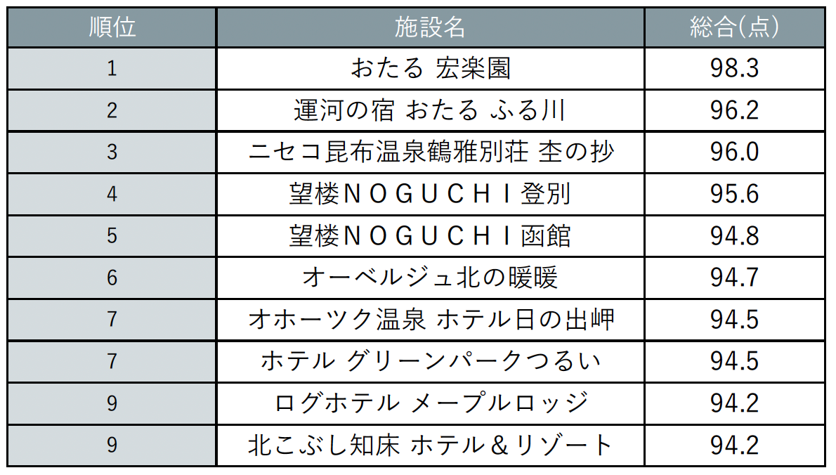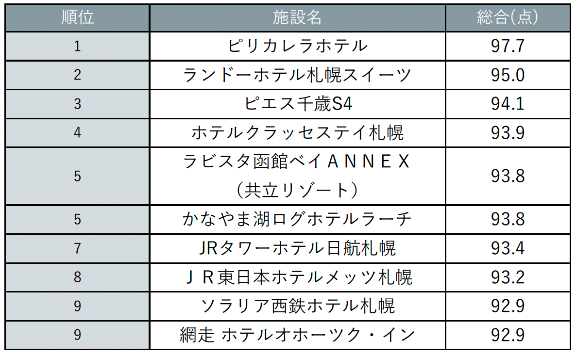 ※ランキングはクチコミ件数15件以上かつ総合評価85点以上の全道の宿泊施設を対象(閉館済みの施設は対象外)