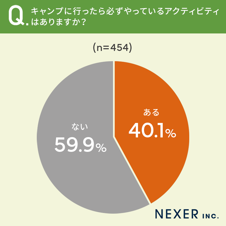 40.1%の方が「キャンプで必ずやるアクティビティがある」と回答しています。