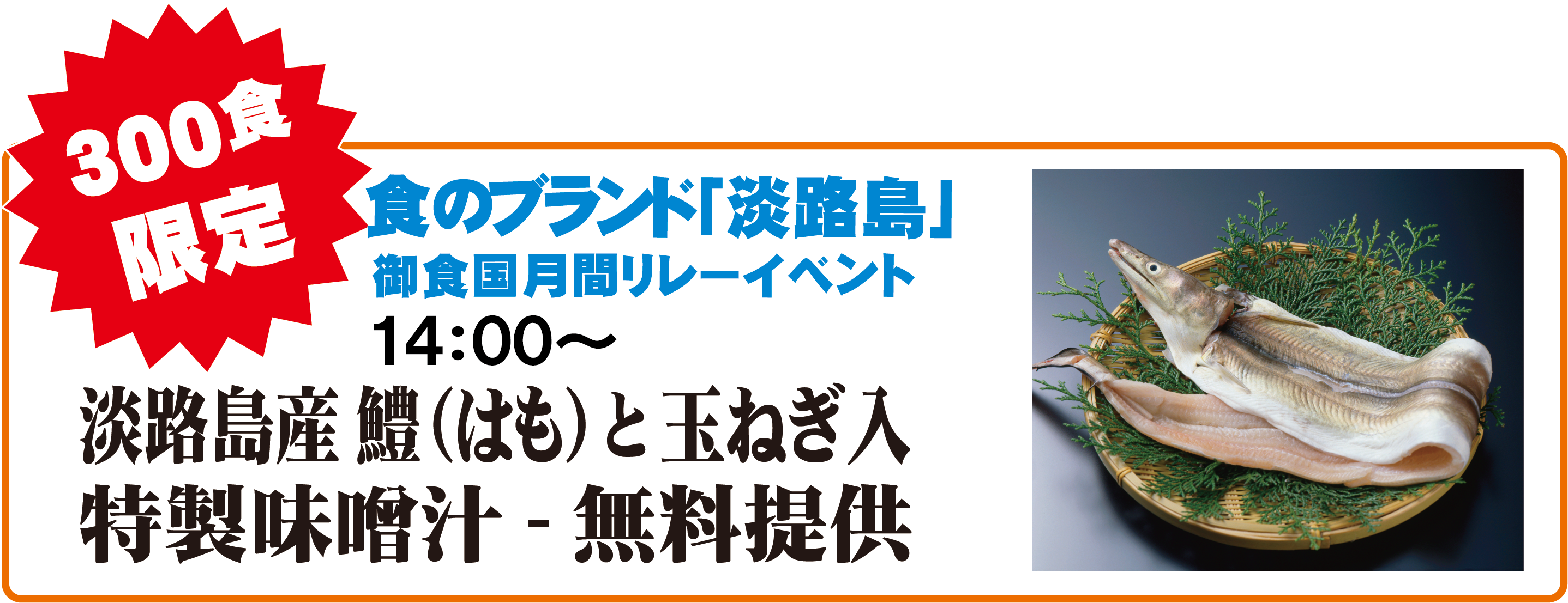 「ドラえもんショー」「 300食限定無料提供 -淡路島産鱧と玉ねぎの特製味噌汁」「ダンスパフォーマンス」「キッチンカー出展」「アンケートに答えて地元名産品が当たる抽選会」など