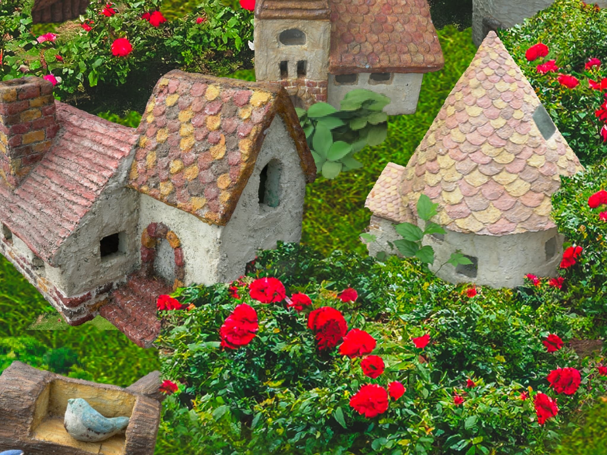 バラエン新登場のミニバラ「マルティ・フォーエバー」100株を、かわいいオブジェたちが引き立てます。「ミニローズガーデン」は夕陽の丘プレイランドとバラエンを結ぶ位置にあり、こどもからおとなまで、ご家族揃って楽しめます。