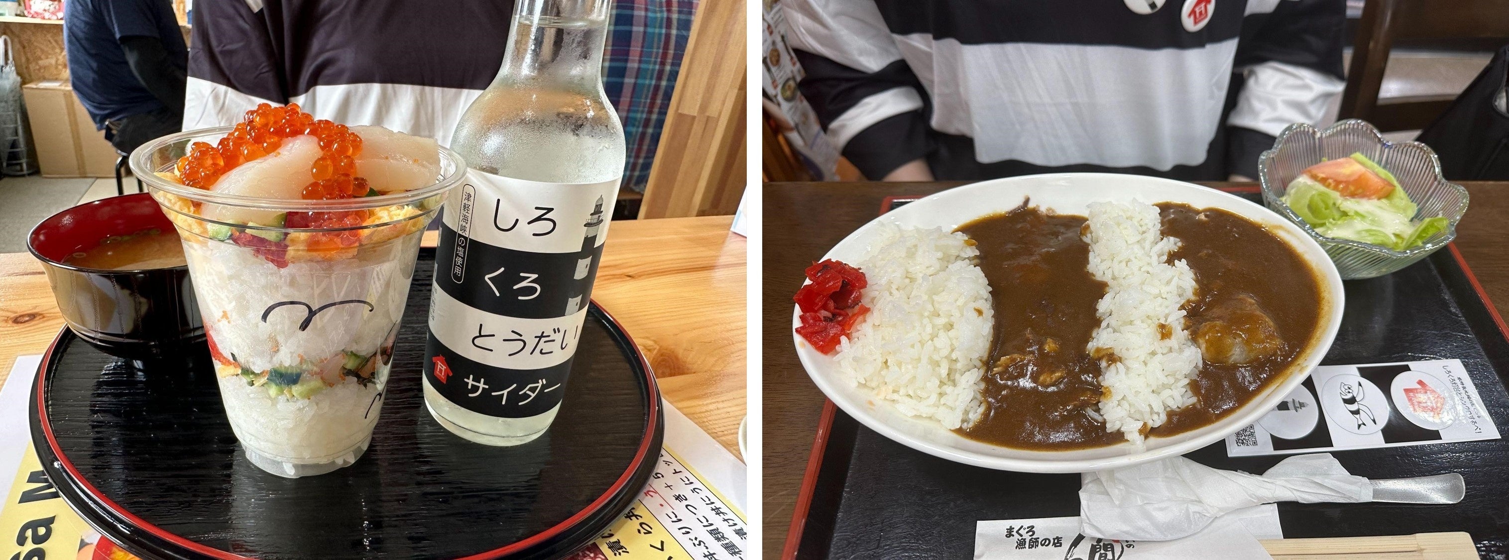 左から:しましま海鮮丼、しろくろとうだいサイダー、しろくろマグカレー