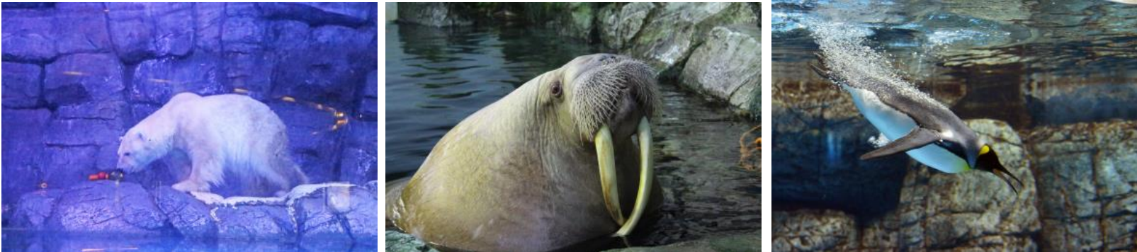 時 間 : ■平日 13:30~ 月曜日・木曜日 セイウチ回 火曜日・金曜日 ホッキョクグマ回 水曜日 ペンギン回 ■土休日 12:00~ ペンギン回 12:30~ ホッキョクグマ回 12:45~ セイウチ回 ※各回約10分間 ※曜日により解説を行う生きものが異なります。 場 所 : アクアミュージアム1階 LABO4「氷の海にくらす動物たち」 |