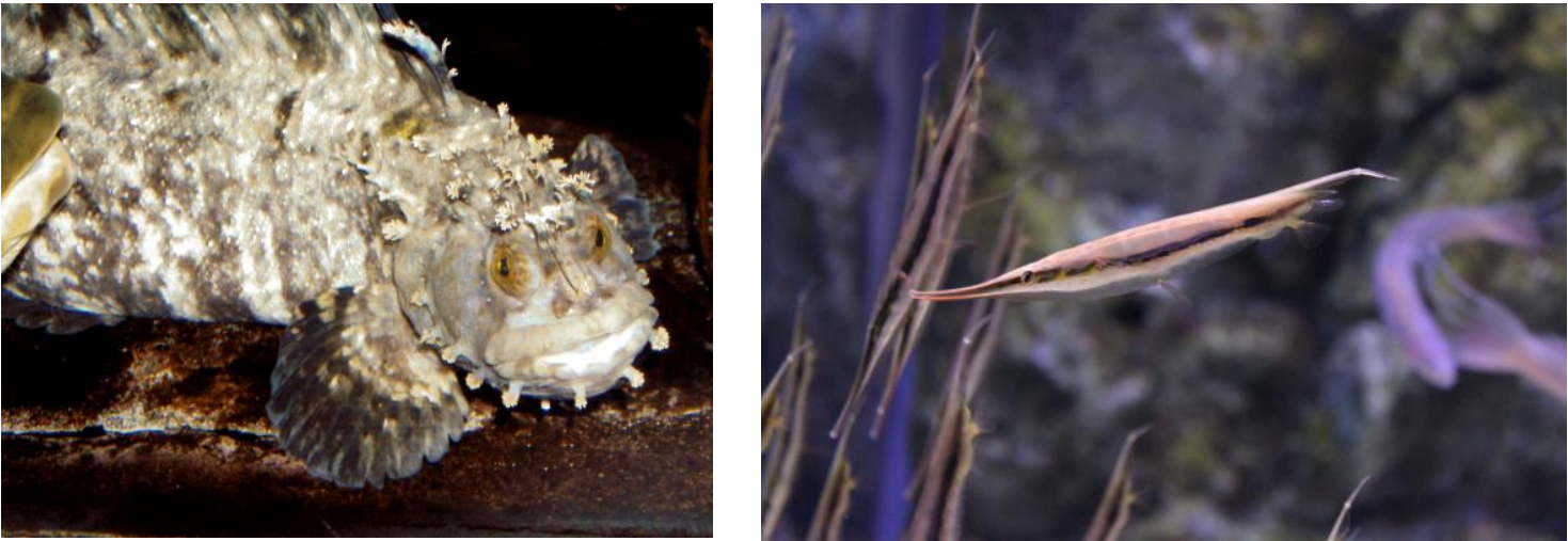 水族館「アクアミュージアム」では、ハロウィンの仮装をテーマに擬態するさまざまな生きものたちを紹介いたします。擬態する生きものは、自らの体や色などを周りの岩や砂、他の魚などに似せることができます。本企画では、各水槽に設置された展示パネルを通じて擬態の種類や理由などの解説を交えながら、対象物にそっくりになりきる姿形をご覧いただけます。