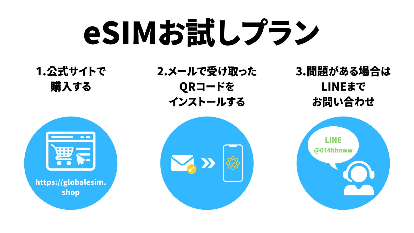 この試用プランは日本国内で利用できるため、eSIMの設定や使用感を事前に確認したい方に最適です。将来の海外旅行や出張の準備としてもご活用いただけます。
