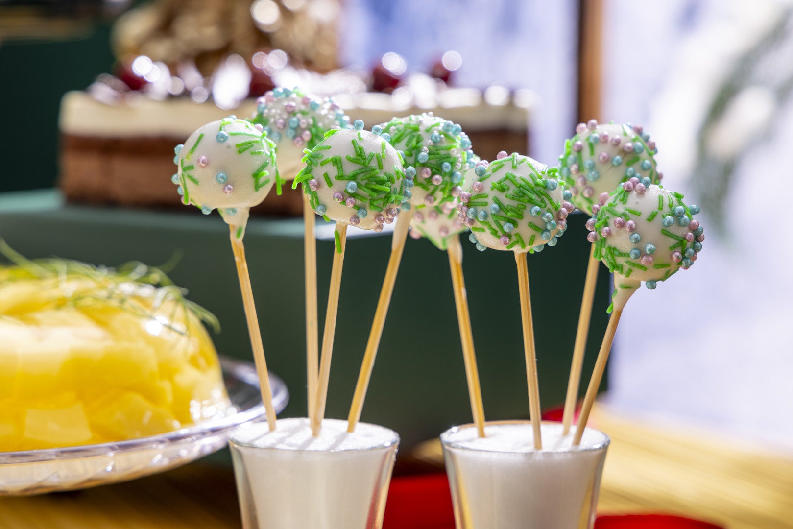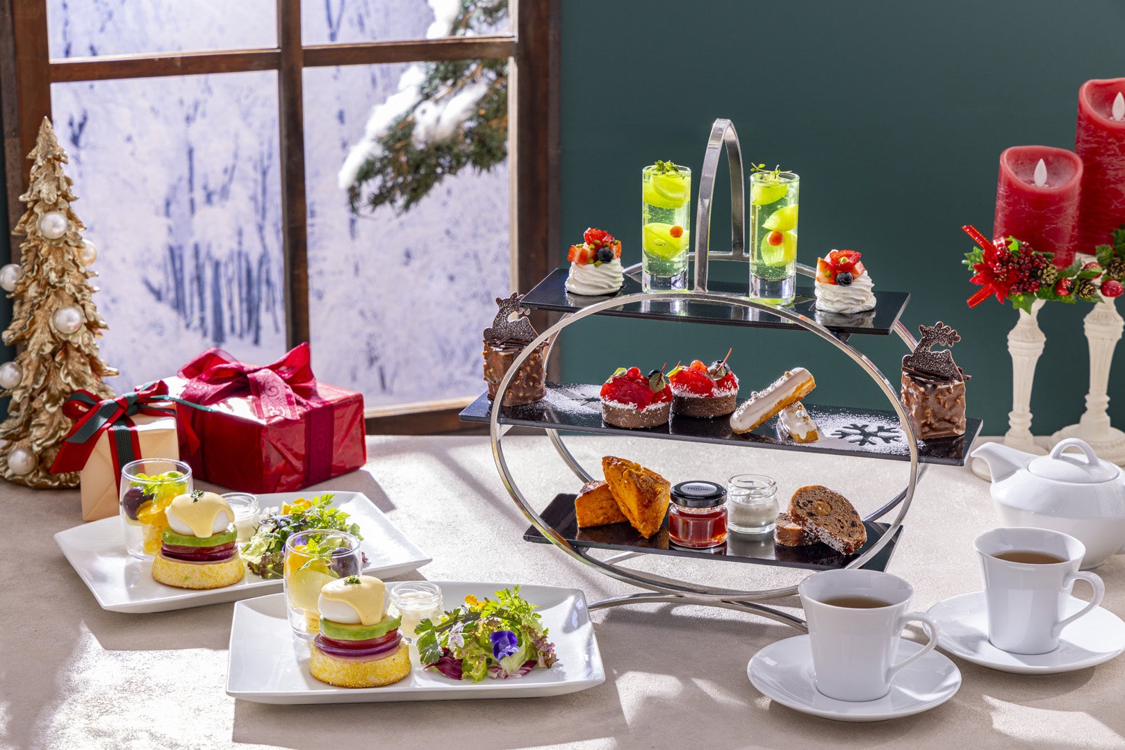 パウダースノーがきらめく一面の銀世界のなか、フェスティブシーズンを楽しむクリスマススイーツ6種類、スコーン1種類、セイボリー3種類をご用意しました。
