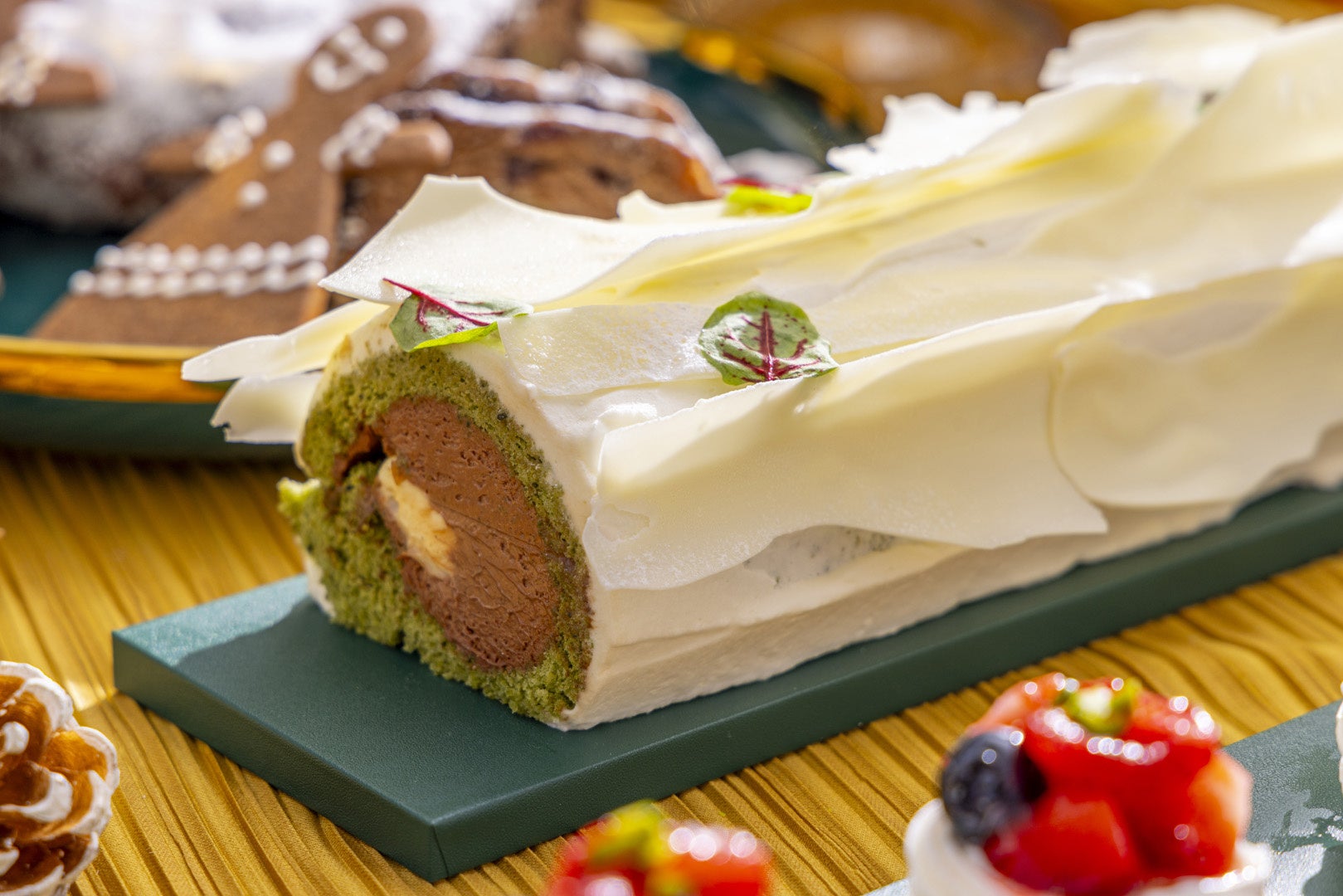 森の木をモチーフにしたフランス発祥のクリスマス定番のケーキに、雪化粧をほどこしました。