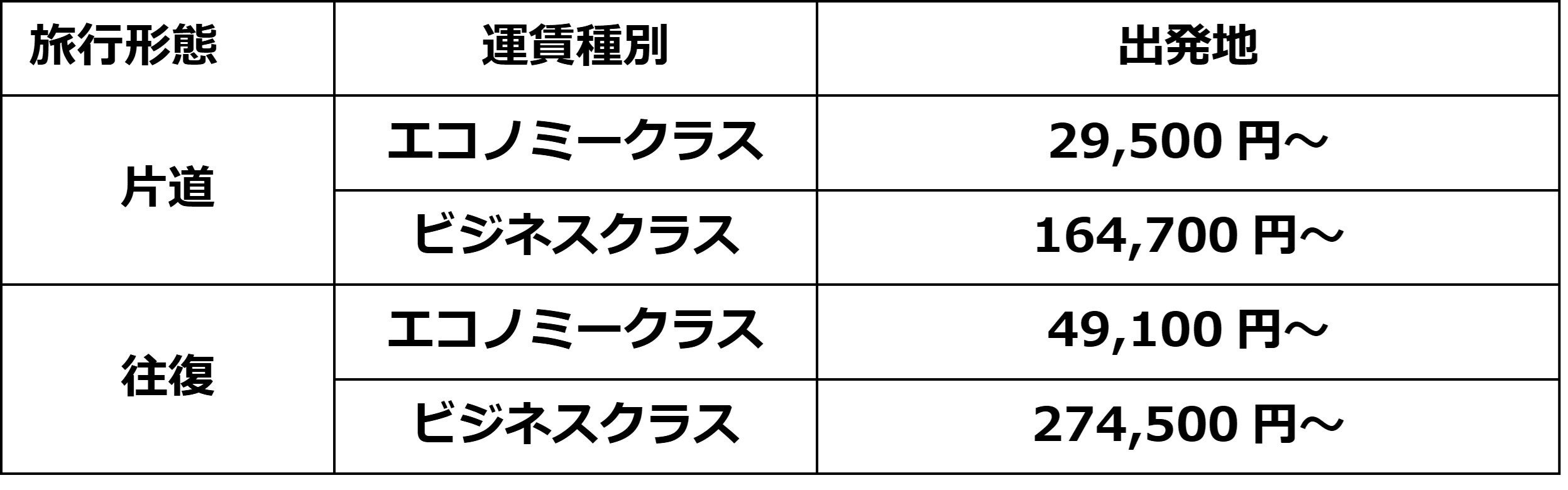 *空港諸税、燃油サーチャージ(該当する場合)は含まれていません。