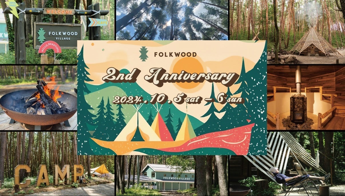 キャンプ・カフェ・サウナ・ショップ・プレイグラウンド・ワーケーションラウンジからなるアウトドア複合施設FOLKWOOD VILLAGE 八ヶ岳が2周年を迎え10月5日(土)・6日(日)にアニバーサリーイベントを開催。