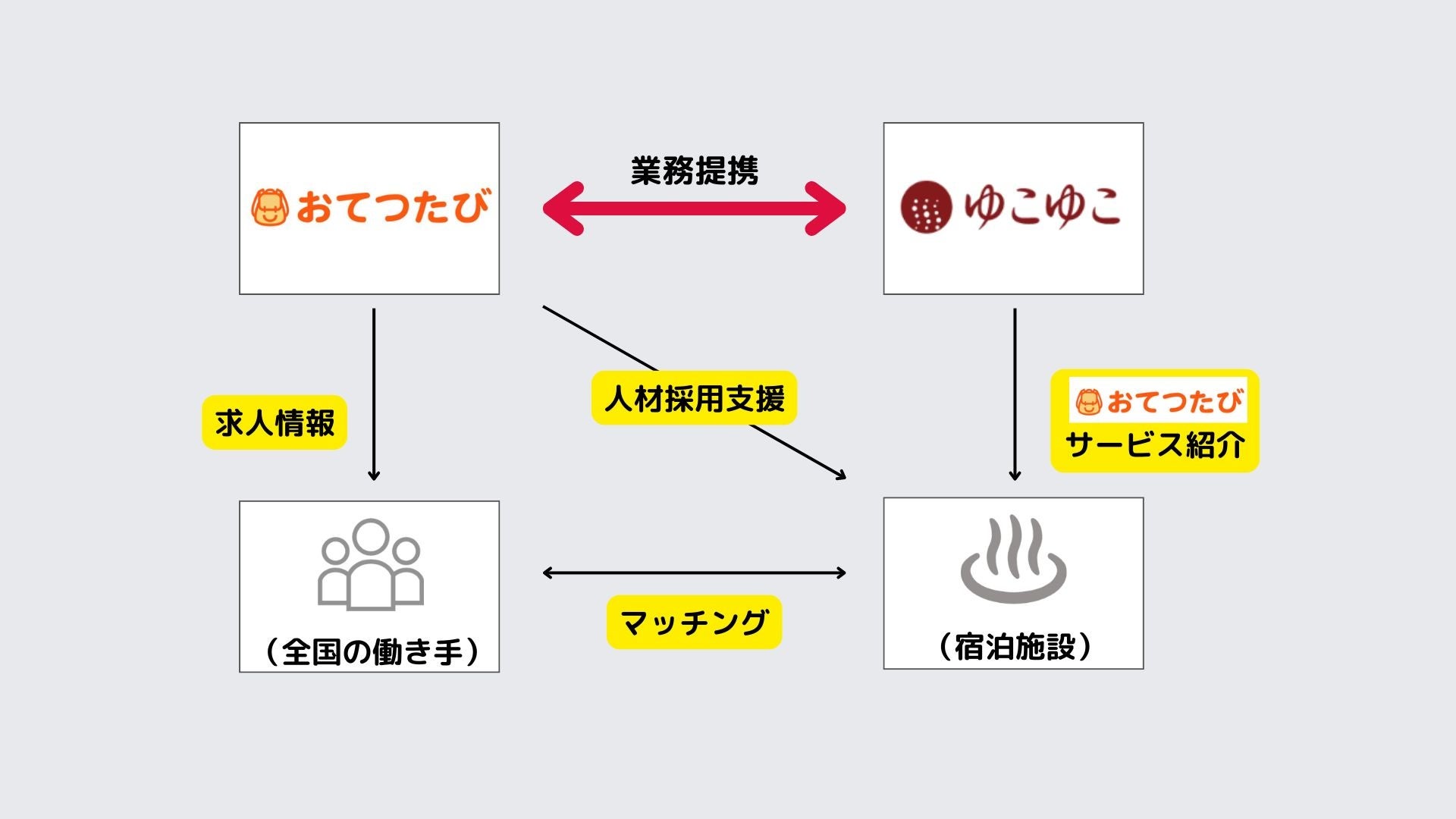 温泉宿のお電話予約サービス「ゆこゆこ」やシニアマーケティング支援事業を提供する株式会社ゆこゆこ(本社:東京都中央区、代表取締役社長:徳田 和嘉子、以下「当社」)は、人材マッチングサイト「おてつたび」を運営する株式会社おてつたび(本社:東京都渋谷区、代表取締役:永岡 里菜、以下「おてつたび」)と業務提携いたしました。この提携により、当社は「おてつたび」とともに地方のさらなる関係人口創出を目指します。