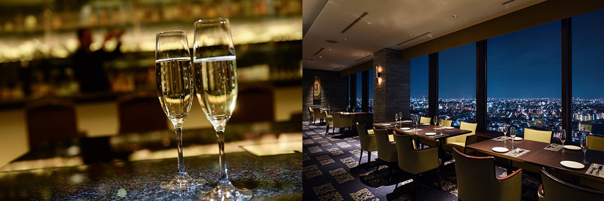 クリスマス期間オリジナルのオードブルプレート、温菜、デザート、スパークリングワイン等のお飲み物から選べるフリーフローが付いた「Sparkling Christmas」。最上階からの景色とともに、充実したフリーフロー、お酒と合う本格料理の数々を楽しみながら、カジュアルな雰囲気の中で特別な時間をお過ごしいただけます。特別プログラムでお送りする生演奏を聴きながら、カップルやご夫婦はもちろん、女子会や同僚とのお集まりなど、グループでのご利用にもおすすめです。