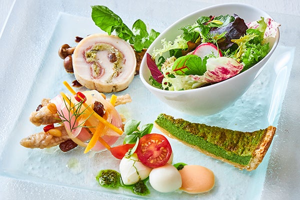 人気のランチメニュー「オーヴェストランチ」をクリスマス仕様にアレンジいたします。4種類の前菜とプチサラダのプレートからはじまり、かぼちゃのクリームスープ、岩手県産の“みちのく清流鶏”をポルチーニ茸と煮込んだメイン料理にミックスベリーのパルフェがついた、ランチにおすすめのカジュアルコースです。