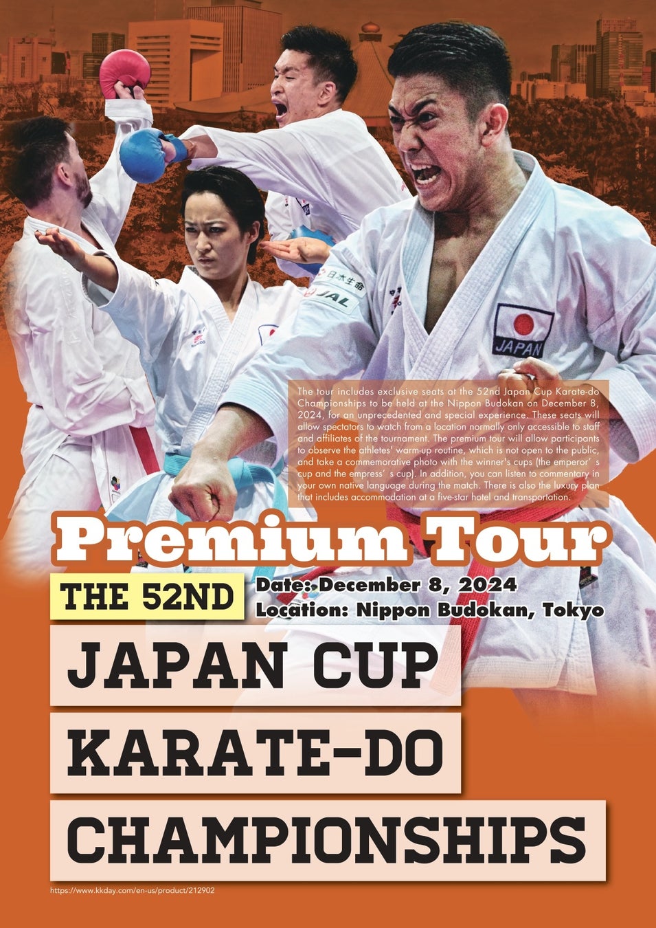 このツアーは、2024年12月に開催される「第52回全日本空手道選手権大会」および、2025年1月に京都市武道センター(旧武徳殿)で行われる「ライジングサン空手スペクタクル」において、プレミアムシートでの観戦や特別な空手体験を含む内容です。