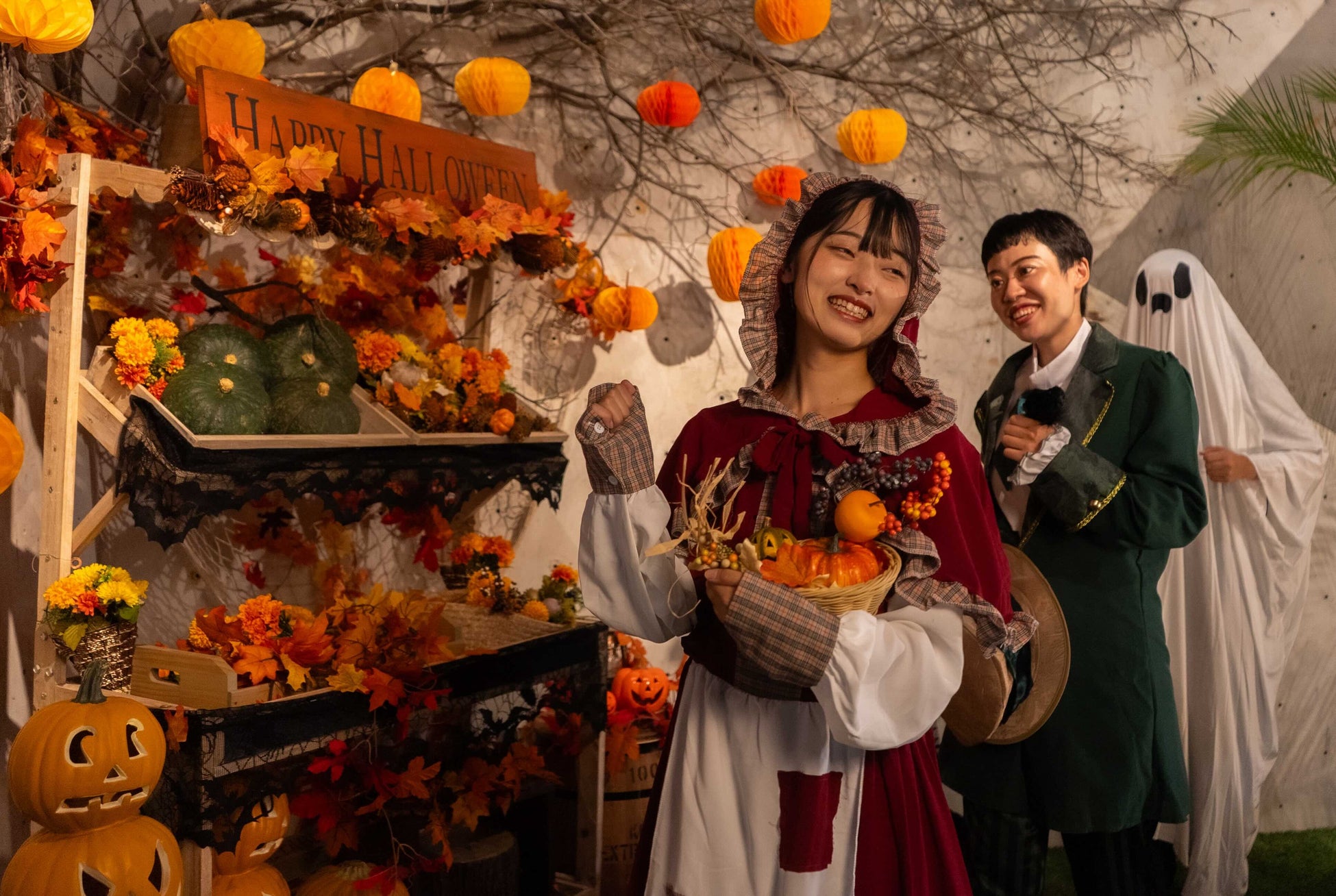 本物の木の枝を使用したシンボルツリーと、かぼちゃの装飾がされたフォトスポットが登場。無料貸し出しの仮装グッズを使って、ハロウィンならではの写真を撮ることができます。