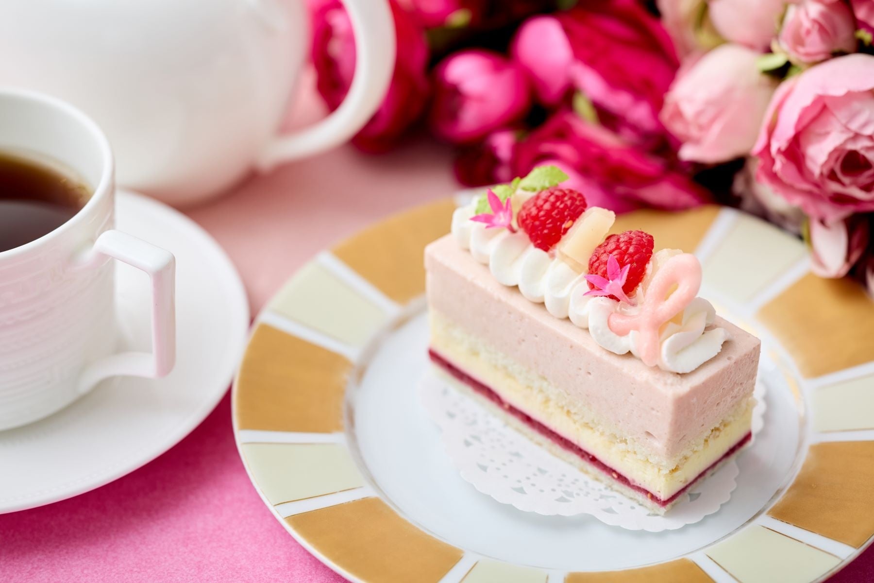 桃やラズベリーを使用したオリジナルケーキを期間限定で販売(料金:880円 ※消費税込・サービス料15%別)
