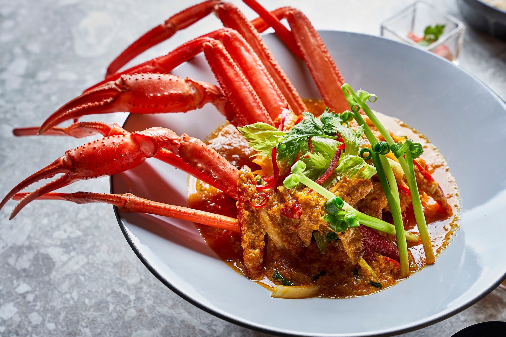 蒸し紅ズワイガニ、蟹の春雨サラダ、タイ風蟹の卵カレー、タイ風蟹のスパイス炒め、蟹の生春巻き