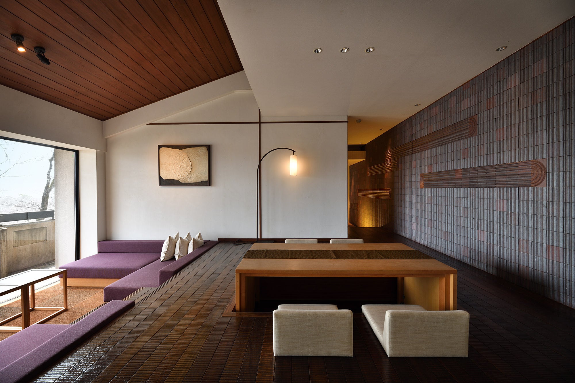 那須御用邸のすぐそばにある那須別邸 回は客室は全て70平米以上の広さがあり日本古来の素材や伝統工芸、土地の素材、工芸を使用しながら機能的に現代の生活様式に合った心地よい設え那須の四季とともに心穏やかな滞在を提案します。