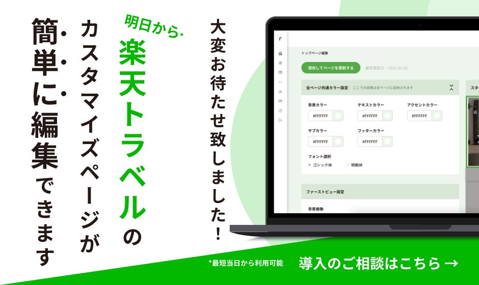 宿泊事業者向けの集客ソリューションを提供している株式会社micadoが、ホテル事業者の楽天トラベルからの予約増加へ向けて、楽天トラベルカスタマイズページ(以降、カスタマイズページ)をノーコードで管理できるWebアプリケーションを2024年10月1日にリリース。