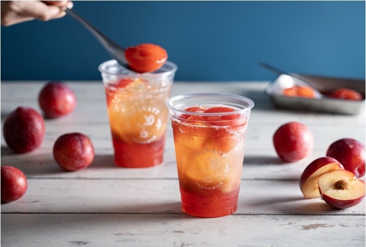 内容:豊富な果汁と強い甘さを生かした自家製のコンポートに、クオリティーシーズン・ウバの華やかな香りを合わせて、爽やかなプラムティーソーダにしました。太陽プラムのコンポートを丸ごと浮かべた、果実感たっぷりのティーソーダです。