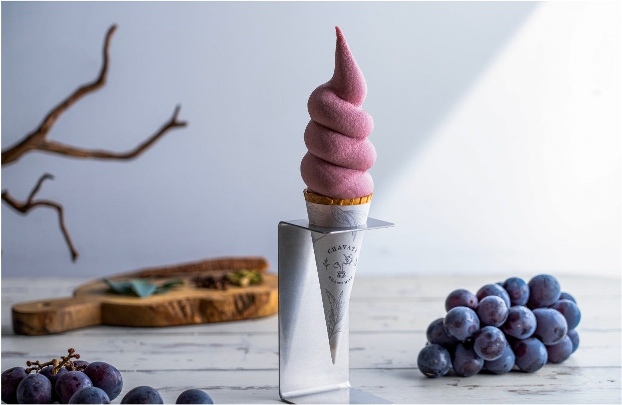 内容:鮮やかに色付く巨峰の豊かな味わいにクロモジの深い香りと清涼感が広がる、秋にふさわしいソフトクリームです。