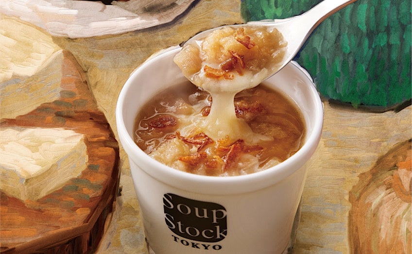 内容:じっくり炒めた玉葱を使い、パンを加えてとろみをつけました。ゴッホが描いた絵画をイメージした、オニオングラタン風のスープです。