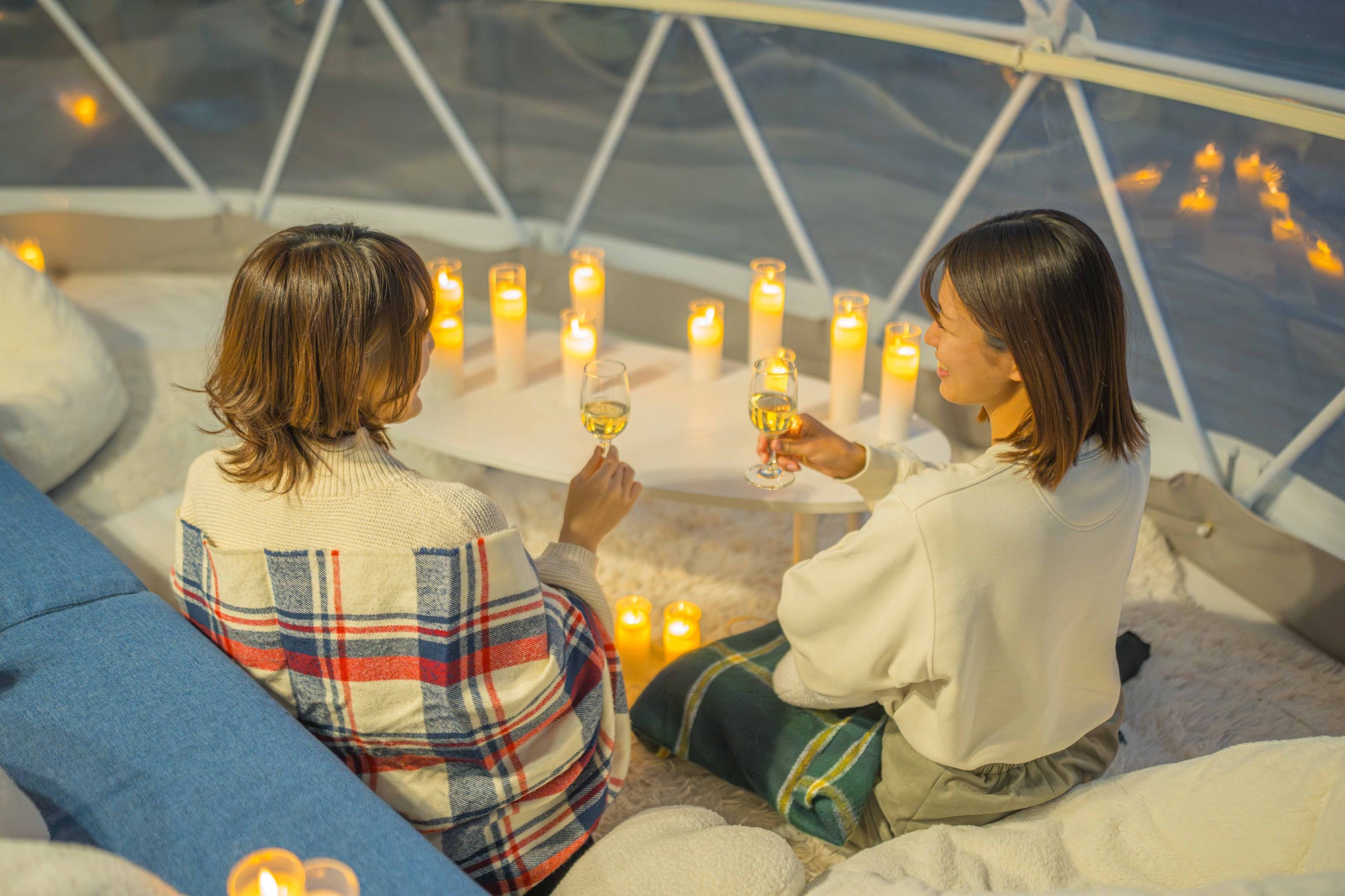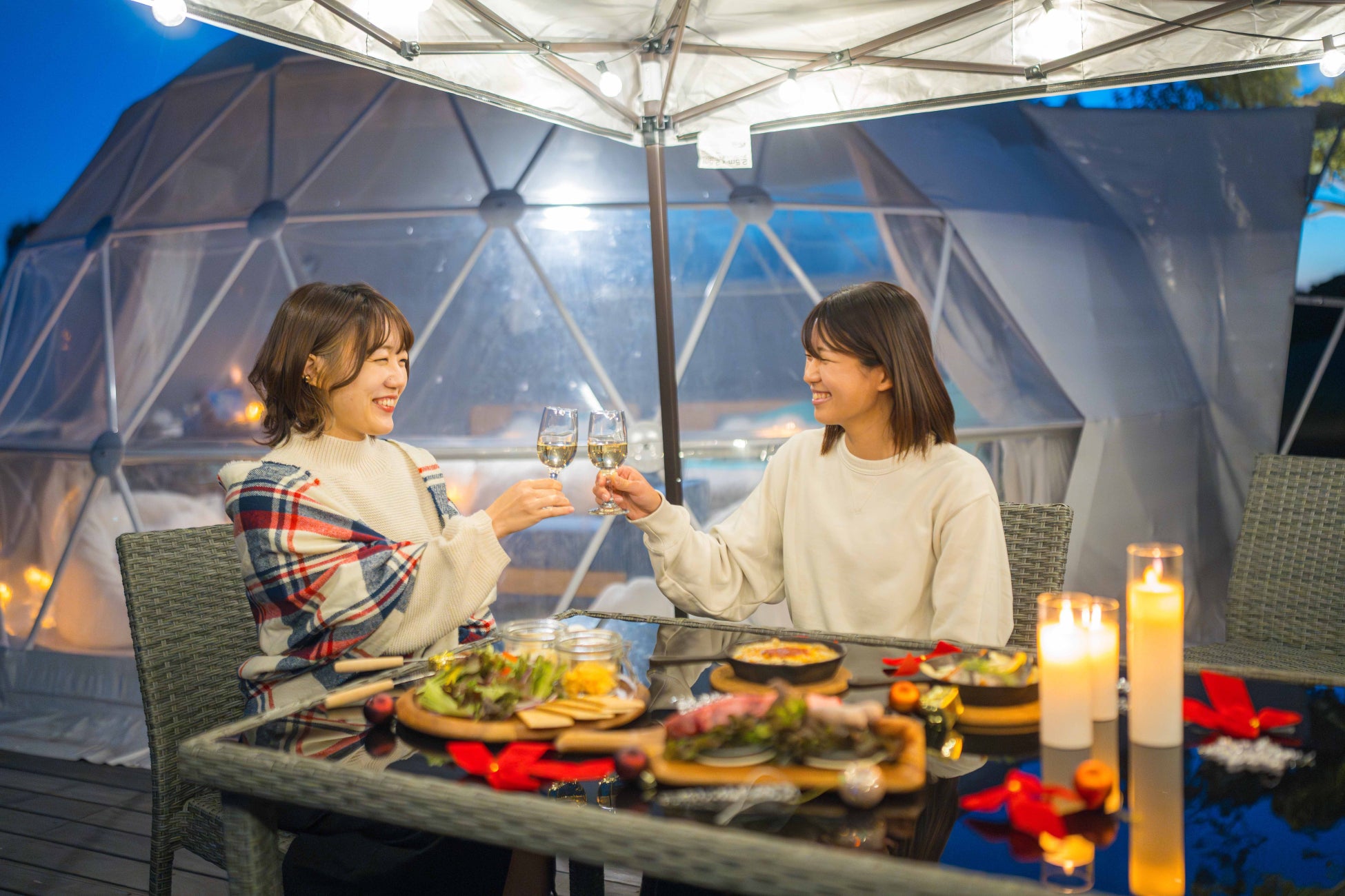 テント内やプライベートテラスでワインを片手にリッチな空間を味わえます。