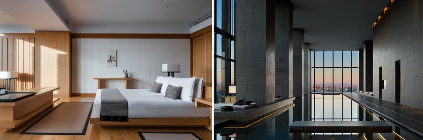 「アマン東京」は2014年12月22日にアマン初の都市型ホテルとして開業いたしました。高層複合ビル大手町タワーの最上階部33階から38階に、木と石と和紙による、日本の伝統文化と現代性を兼ね備えた広々とした静かな空間を提供しています。客室数84室、高い天井高を持つガーデンラウンジを始め、レストラン、バーラウンジ、1階別棟のカフェ、パティスリー、カウンター8席の鮨店、そして8室のトリートメントスイート、30メートルの屋内プールやフィットネスジムを持つアマン・スパなどを擁し、そのどこからでも東京の眺望や自然をご堪能いただけます。