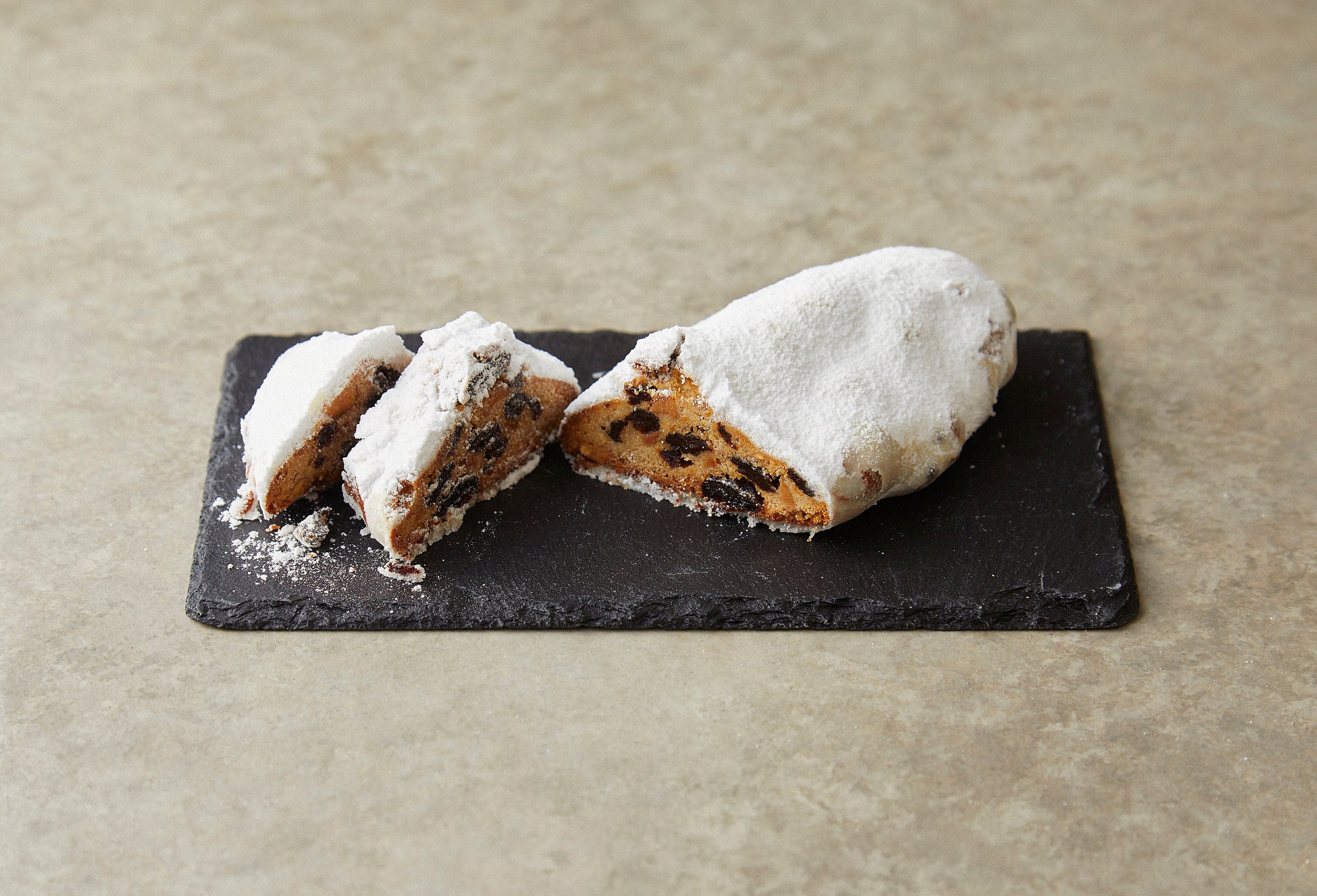 今年のシュトレンは、スペインのマルコナ種アーモンドとカリフォルニア産のアーモンドを主役に、オーガニック小麦「はるきらり」と厳選した素材のみを使ってシンプルに作り上げました。アーモンドペーストを練り込んだ生地に、オーガニックのレーズンをたっぷりと混ぜ込み、ローストしたアーモンド、そして、シナモン、カルダモン、レモン、クローブといったスパイスを加えて、軽やかに焼き上げています。素材本来の美味しさをしっかりと味わうために、厚めにスライスしていただくのがおすすめです。大切な方への贈り物にもぜひどうぞ。