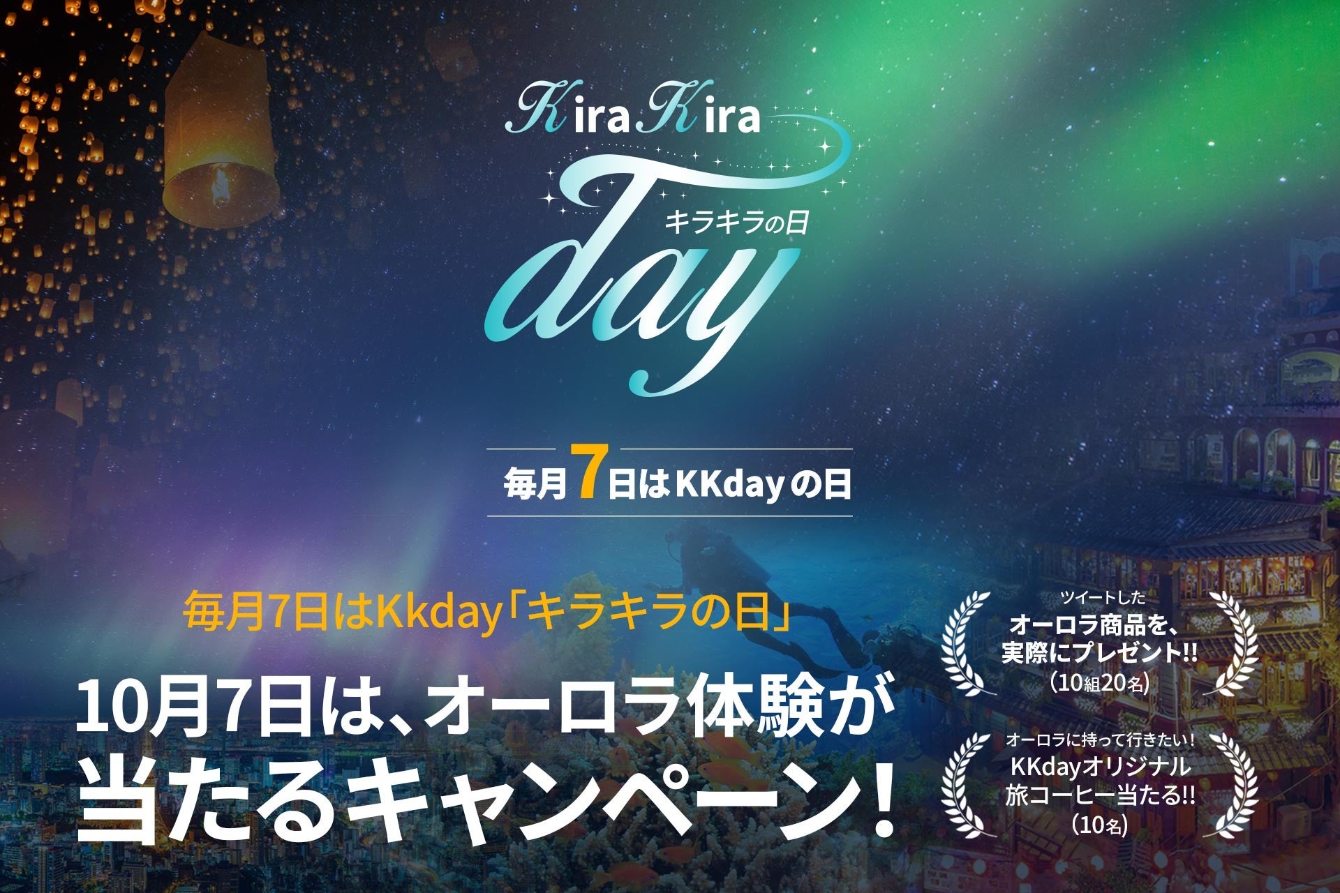 10/7のKKdayキラキラの日は「オーロラ」特集オーロラ出現率が高い今冬、KKdayで体験予約&SNSキャンペーン参加で人生最高の旅をしよう!