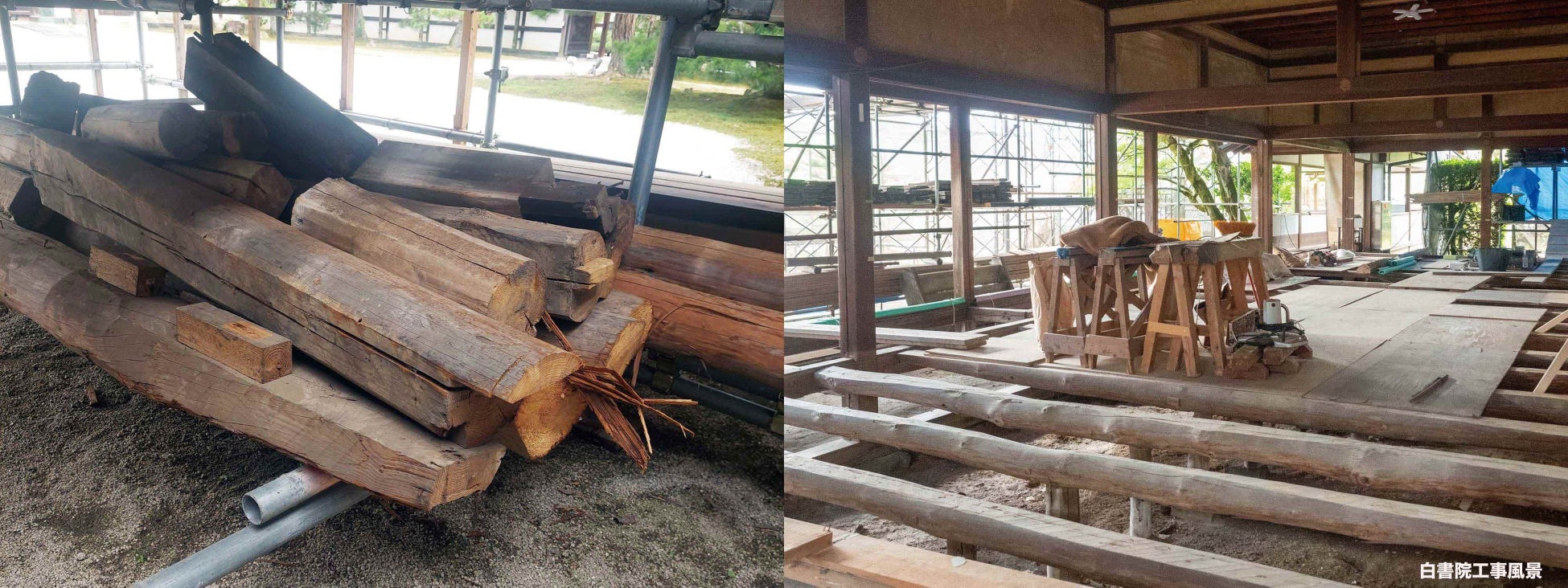 また、御殿建築群は、火災後に造営された殿舎の多くも再建より約 100 年が経過し半解体修理を伴う屋根の葺替えや軒廻り木部の繕い、壁の塗り直し工事が必要となりました。
