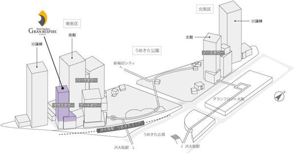2019年11月にヨドバシ梅田タワーに開業した「ホテル阪急レスパイア大阪」の上位ブランドとして誕生する同ホテルは、静かな癒し(静:REST)と明日への活力(動:INSPIRE)を提供するというコンセプトを継承しつつ、より質の高いくつろぎを求めて、スペイン語・イタリア語で“素晴らしい”“素敵な”を意味する“GRAN”を冠しました。「レスパイア(RESPIRE)」ブランドとしては2店舗目の出店となります。