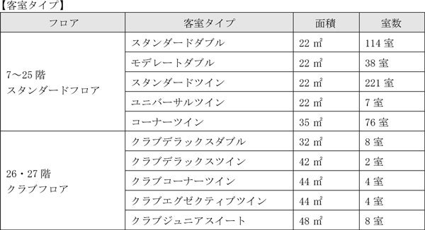 上層階(26・27階)のクラブフロアには、ゆったりとくつろぐことができるリビングスペースを設けたエグゼクティブツインルームやジュニアスイートルームなどをご用意。クラブフロアにご宿泊のお客様は、27階クラブラウンジと、同じ建物内にある健康増進施設を無料でご利用(1泊につき1回)いただけます。