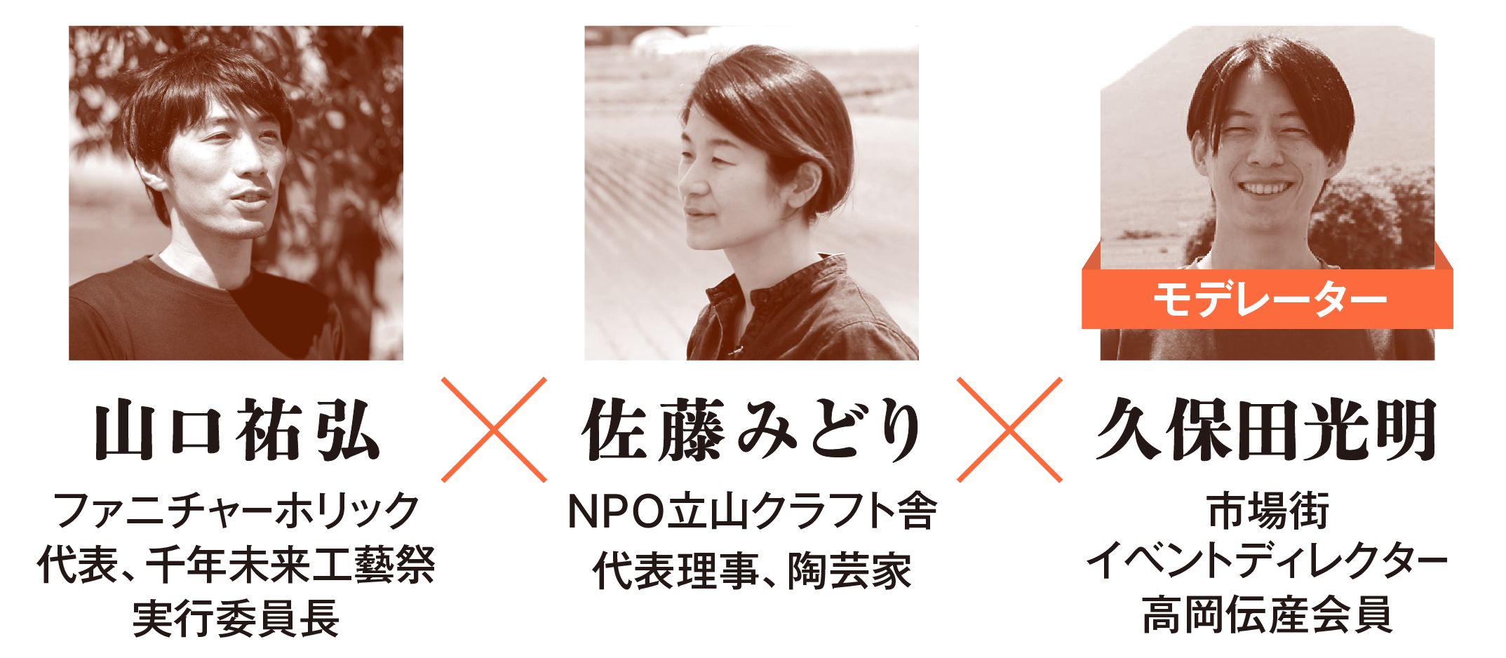 -登壇者:ファニチャーホリック代表、千年未来工藝祭実行委員長 山口祐弘氏/NPO立山クラフト舎 代表理事、陶芸家 佐藤みどり氏