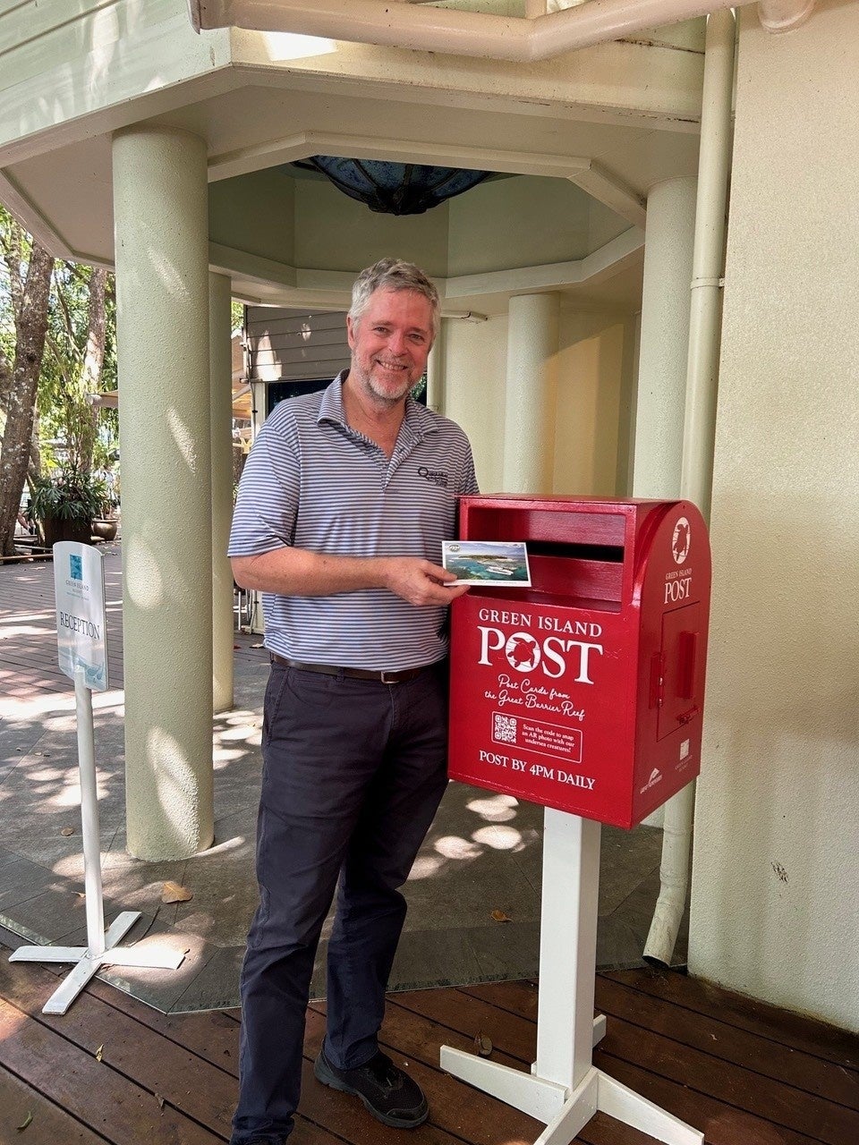 内容としては、100周年記念ポストカードの販売を期間限定で行います。記念ポストカードには、グリーン島とクルーズ船がデザインされており、旅の思い出にすることもできるほか、グリーン島のインフォメーションセンター前に周年を記念して新たに設置された郵便ポストに投函することで、グリーン島での体験や思い出を家族や友達に共有することもできます。さらに、郵便ポストにはQRコードが掲示されており、QRコードを読み込むと、ARフォトフレームが表示され、グリーン島付近に生息している海洋生物と一緒に写真を撮ることができます。