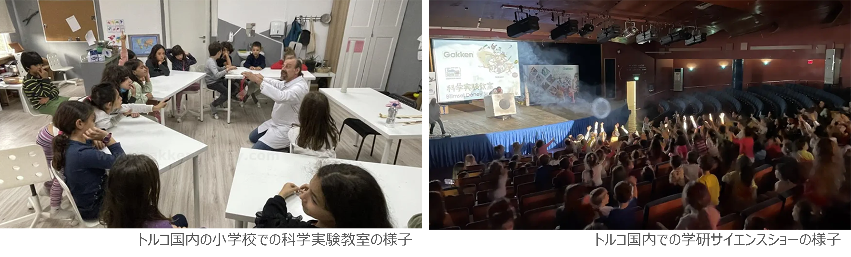 2022年4月に設立された学研トルコは、国の産業を担う人材を育てるべく、これまでトルコおよび周辺国の子どもたちに、STEAM教育※を展開してきました。中でも、科学の分野においては、現地の小中学校の理科の授業で、『学研科学実験教室』を導入し、実績を残してきました。実験を通して、子どもたちは、自分で考える力や問いを立てる力が養われ、身の回りのできごとや理科などの科目に大きな興味・関心を持つことが期待されます。今後は、学校の授業の中だけでなく、より多くの子どもたちにイベントを通じて、実験の楽しさをしってほしいという思いから、科学実験の場を提供する学研サイエンスショーを実施します。