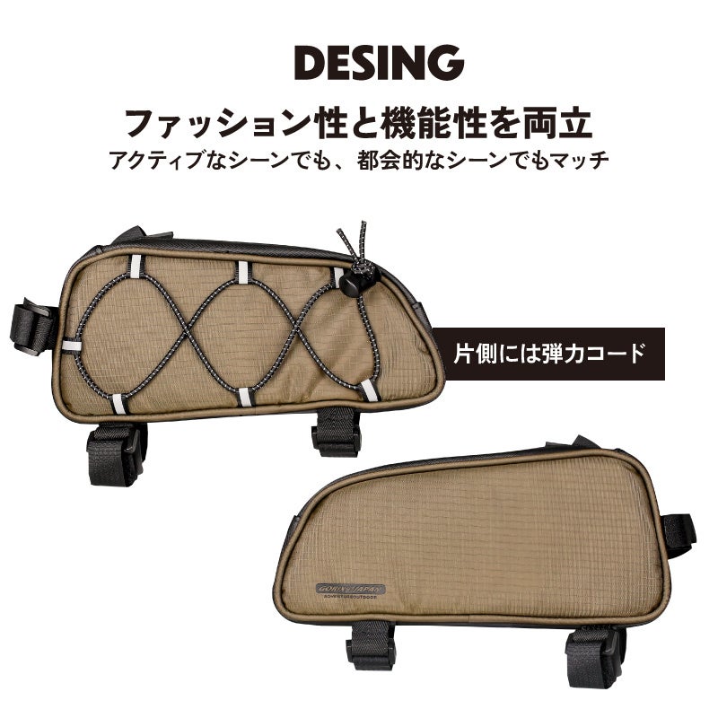 自転車に欠かせないアイテム、トップチューブバッグがDeviシリーズから新登場しました。都会的で落ち着いたブラウン系カラーが、アウトドアや日常のファッションに自然とマッチします。