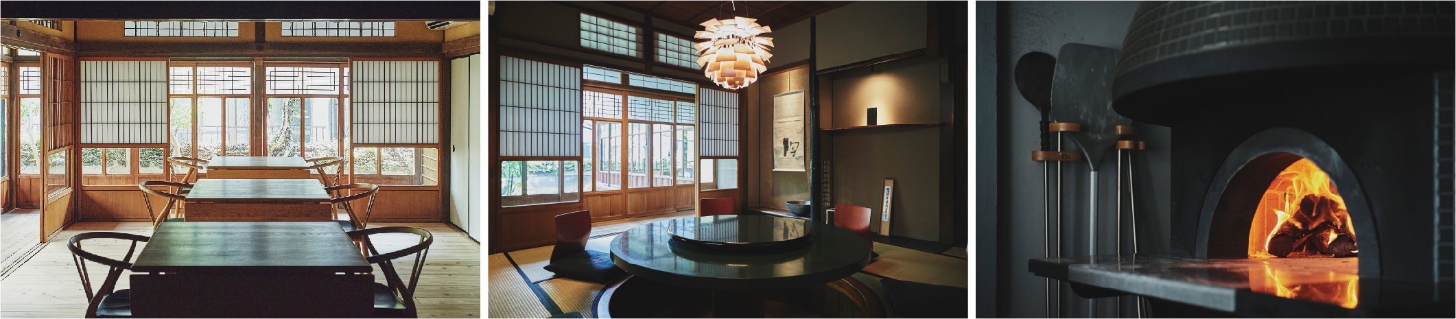 築約100年の和風建築を活かした、1日3組限定のオーベルジュ。周囲の環境や歴史と切れ目なく繋がるよう、空間には元来からの素材を活かしたリノベーションが行われています。