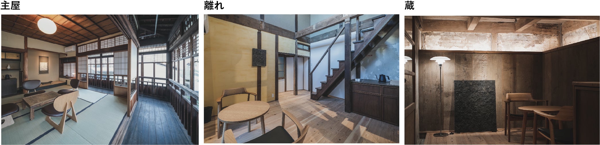 客室数 : 全3室 最大8名「主屋 OMOYA」60m2/「離れ HANARE」50m2/「蔵 KURA」40m2