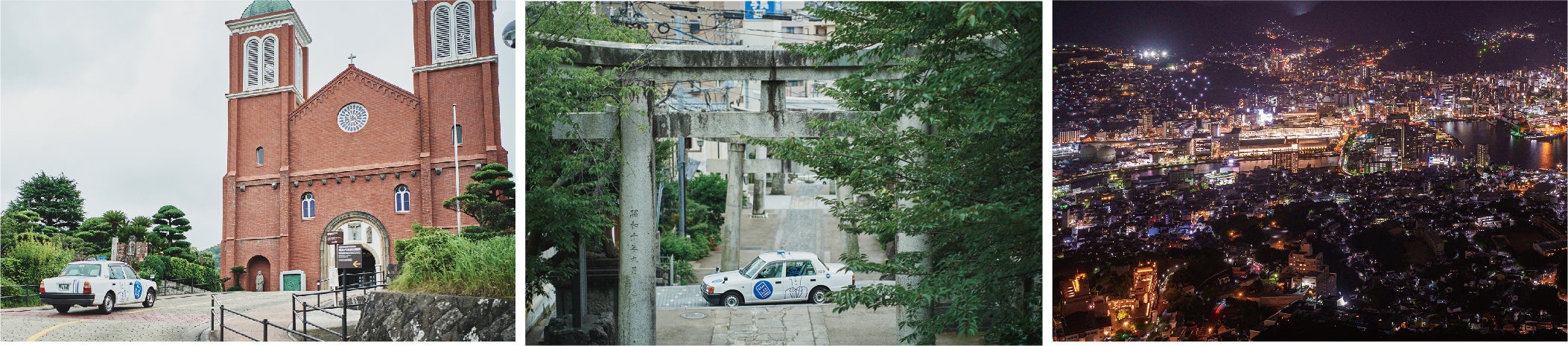 「陶々亭」では、提携するタクシー会社「ブルーキャブ」による、長崎空港から陶々亭までワンストップで送迎が可能なオプションをご用意しています。乗車車両は、アーティスト長場雄のラッピングタクシーまたはアルファードをお選びいただけます。送迎プラン以外にも、お客様のご要望に応じた、夜景観光をはじめとするオリジナルの長崎観光案内も提供し、より豊かな長崎滞在をお楽しみいただけます。