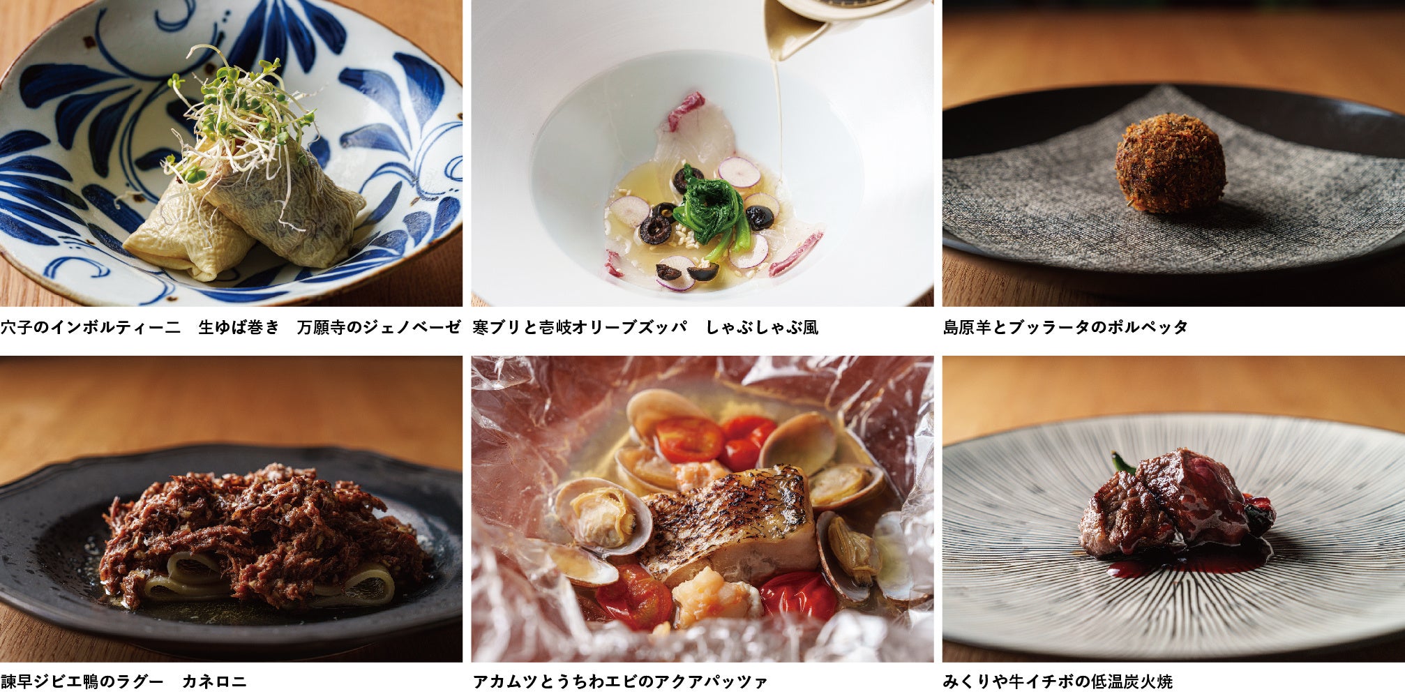 私が大切にしている食材それぞれの「旬」を通して、“じげもん(地元)”の四季の移ろいを感じられるようなお料理をお楽しみください。