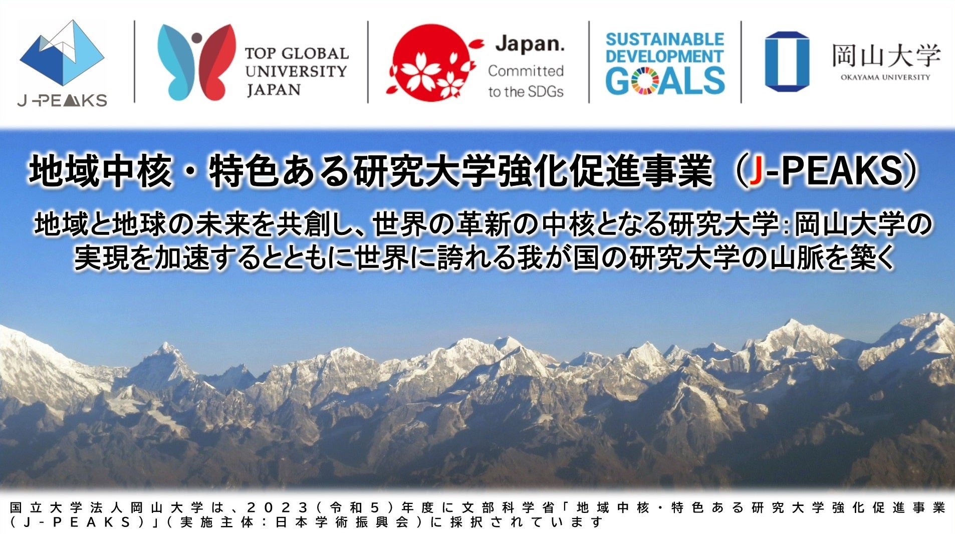 岡山大学 文部科学省「地域中核・特色ある研究大学強化促進事業(J-PEAKS)」に採択~地域と地球の未来を共創し、世界の革新の中核となる研究大学:岡山大学の実現を加速とともに世界に誇れる我が国の研究大学の山脈を築く~