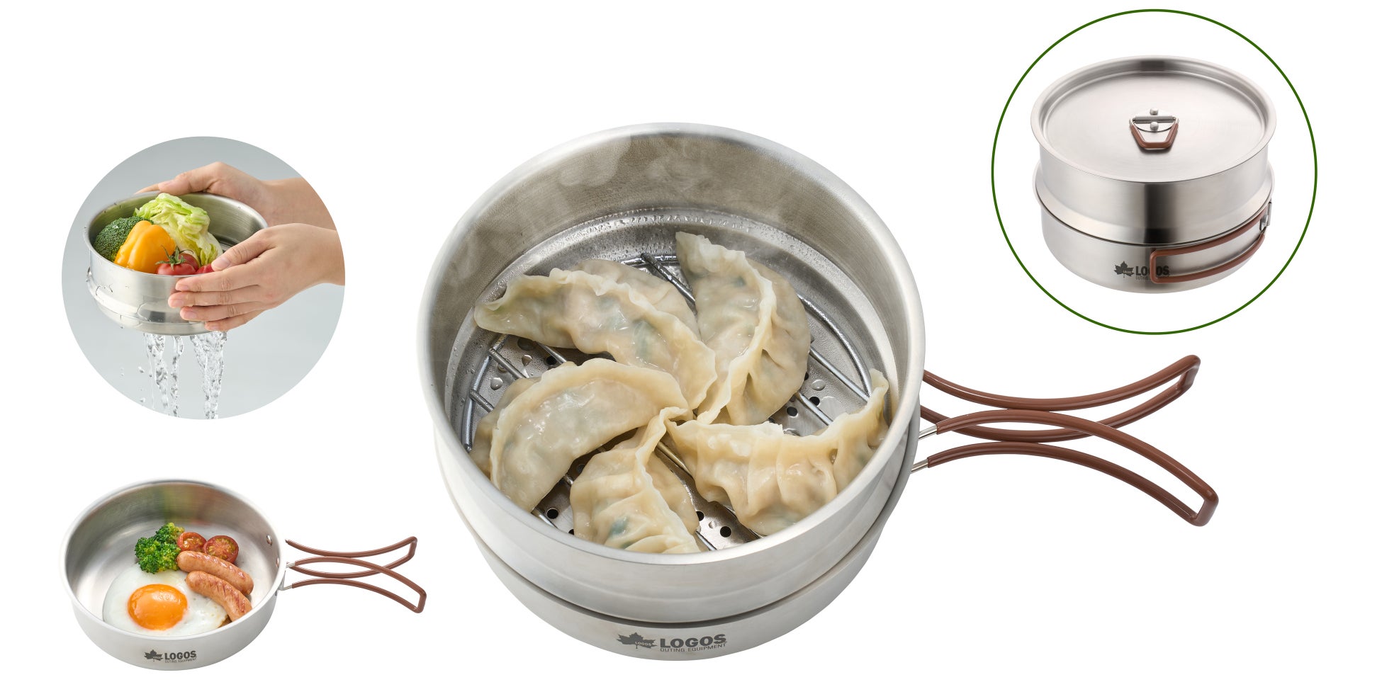 3WAYで幅広い調理に対応し、コンパクトに持ち運びや保管ができるクッカーセット「LOGOS アウトドア蒸し器」を、アウトドアライフでの様々な調理シーンにてぜひともご活用ください。