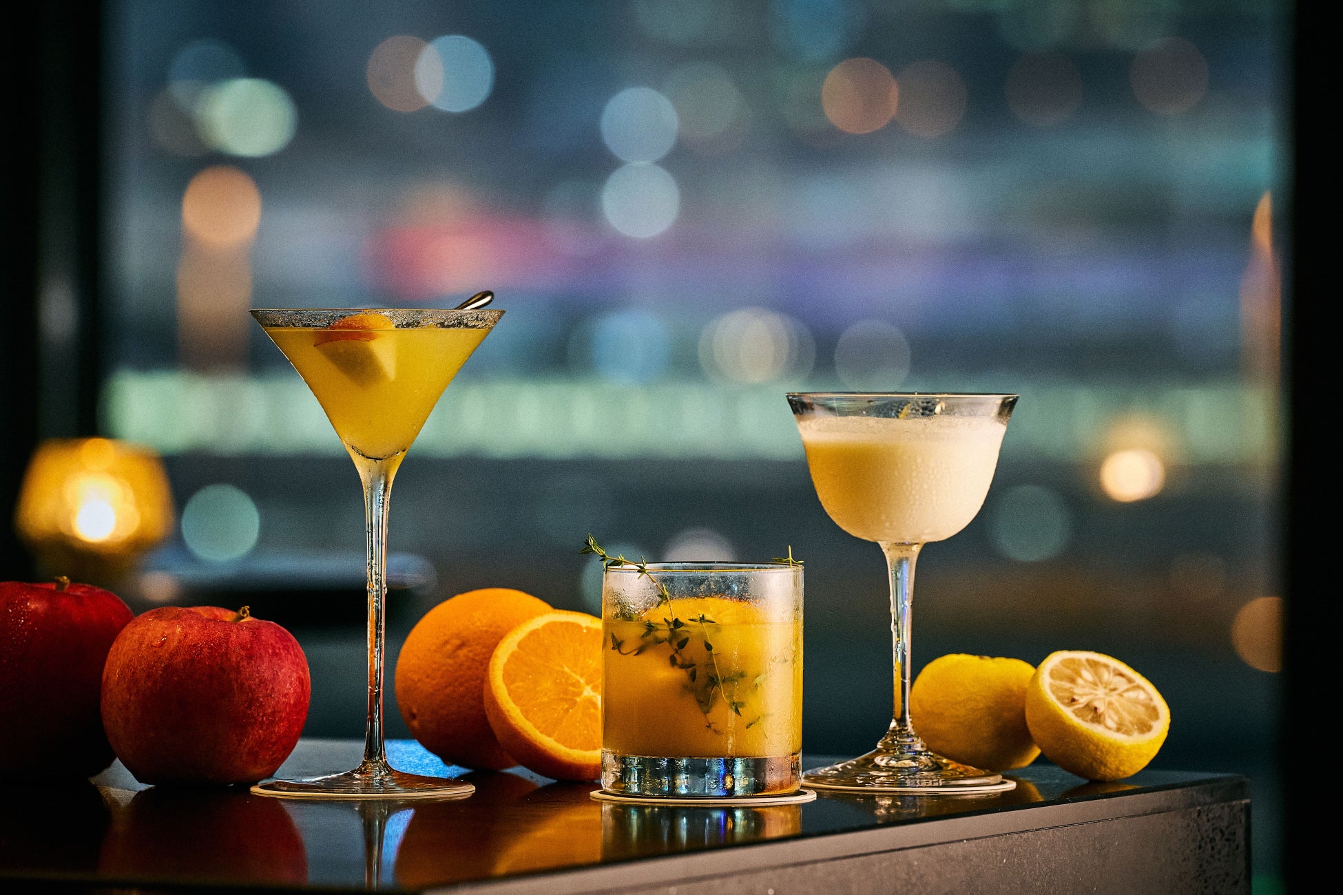 NYの摩天楼を思わせる7.2mのボトルタワーが目を引くヒルトン横浜の「Bar & Lounge Melody」では、2024年12月1日(日)~2025年1月31日(金)まで期間限定で冬のシーズナルカクテル3種を販売いたします。旬のフルーツ「りんご」を使用したマティーニ、「湘南みかん」を使ったすっきりとしたカクテル、そしてチーズケーキ風味のデザートカクテルの3種をご用意いたしました。横浜の美しい夜景が堪能できる夜のバータイムでは、生演奏に耳を傾けながら冬限定のカクテルをお楽しみください。