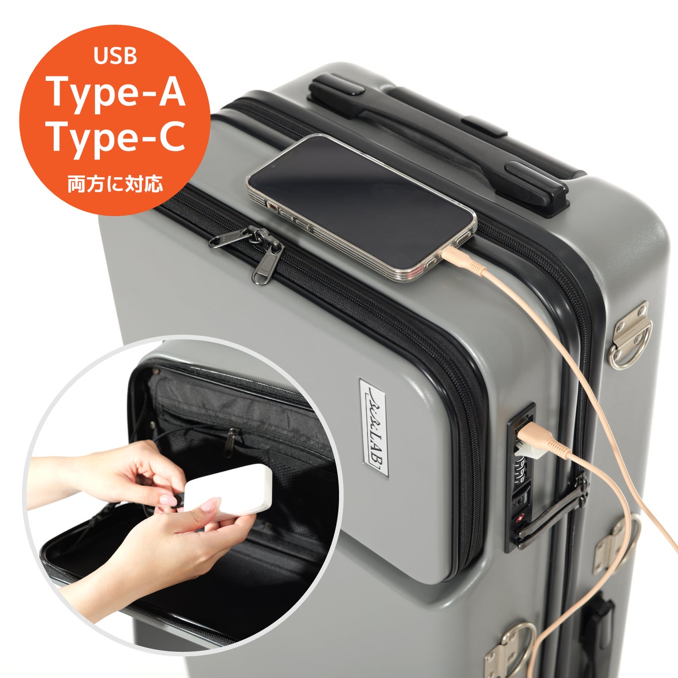 スマホ充電に便利なUSBポート&ケーブル(Type-A/Cの両方に対応)を搭載。モバイルバッテリーを接続すれば、道中の動画視聴も給電しながら楽しめます。