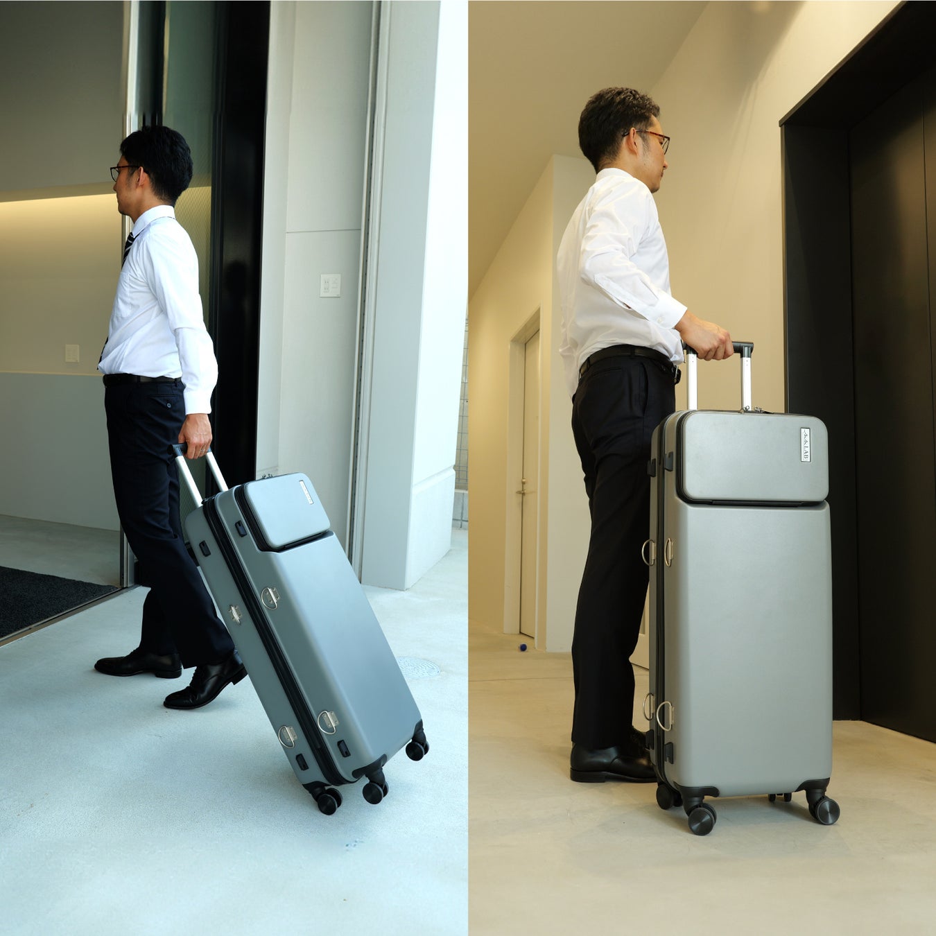 同容量の一般的なスーツケースが幅45~50cmであるのに対し、本製品は幅36.5cmのスリム仕様。日本人女性の平均的な肩幅とほぼ同程度で、駅改札の通り抜けやエスカレーターの乗り降りなど、狭い道の移動もスムーズに行えます。電車や新幹線の車内で周囲の迷惑になりにくい点もうれしいポイントです。