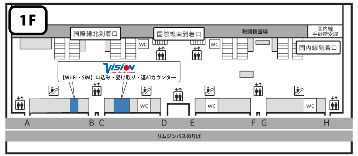 〔*4〕 国際線1階到着ロビー 総合案内横「J WiFi & Mobile」でのご対応となります。
