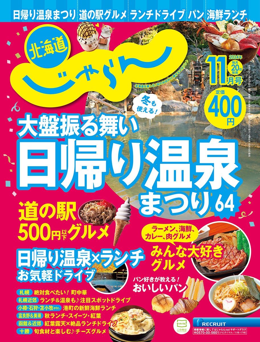 株式会社リクルート(本社:東京都千代田区、代表取締役社長:北村 吉弘、以下リクルート)が発行する旅行情報誌『北海道じゃらん』は、2024年11月号(10月19日(土)発行)にて、北海道にある穴場グルメの記事を掲載いたします。本レターではその中から一部を抜粋して紹介いたします。なお、本内容は『北海道じゃらん』2024年11月号および旅行情報サイト「じゃらんニュース」でも紹介しております。