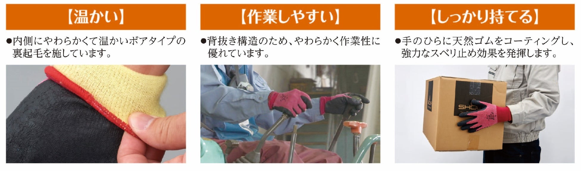 運送業、土木・建設業、倉庫作業、雪かき、DIY、園芸、アウトドアなど