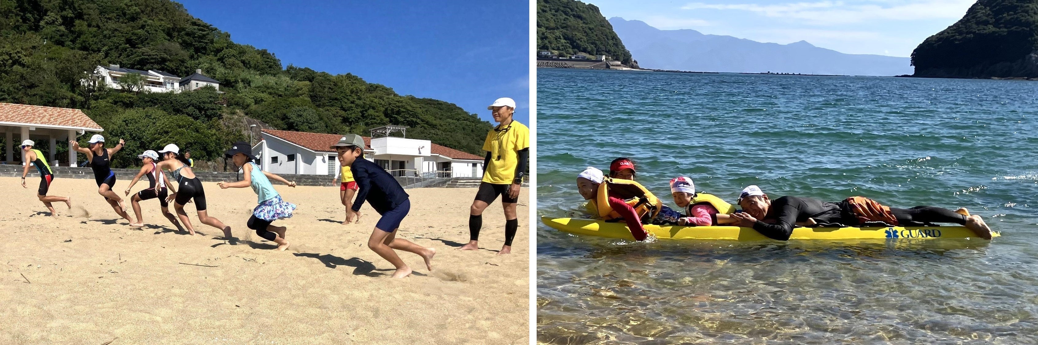 練習後、参加者からは「波があったり、水の色が濃くて先が見えずらかったりしたけど、広い海で泳げて楽しかった」との声があり、プールとの違いを感じつつ、海の魅力を知ってもらえたようでした。