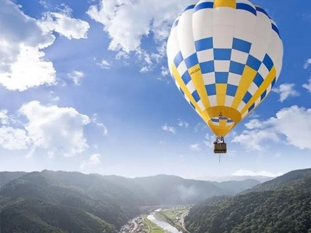 岐阜県郡上市の雄大な景色が一望できる熱気球体験。ふわりと上がる熱気球から見る、秋色に染まる郡上の景色は感動必至!小さな子どもでも体験可能なのでファミリーで思い出に残る一日が過ごせそう。山里を流れる清らかな渓流と紅葉の山々、見渡す限りの大自然を大パノラマで体感することができます。